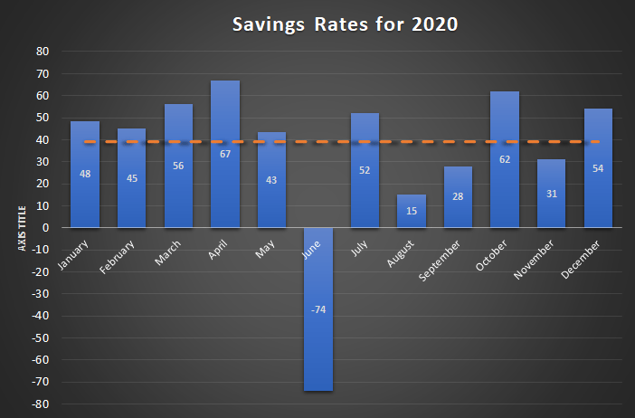 Check out below for a graph of my spending rate over 2020, by month: