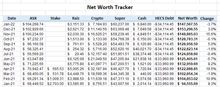 - On the 31st of December 2021, my net worth is $147,567.55.
