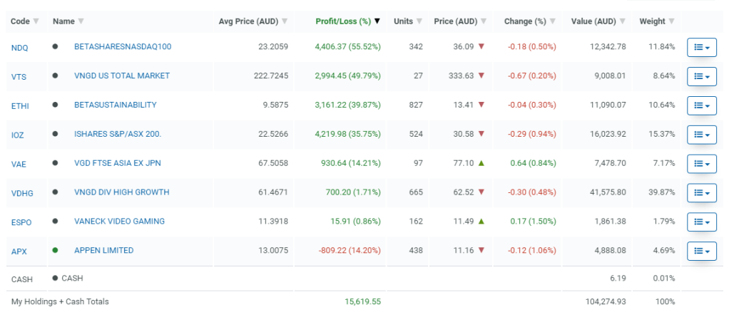 - On 1 January, my Self Wealth Portfolio was $68,449.52