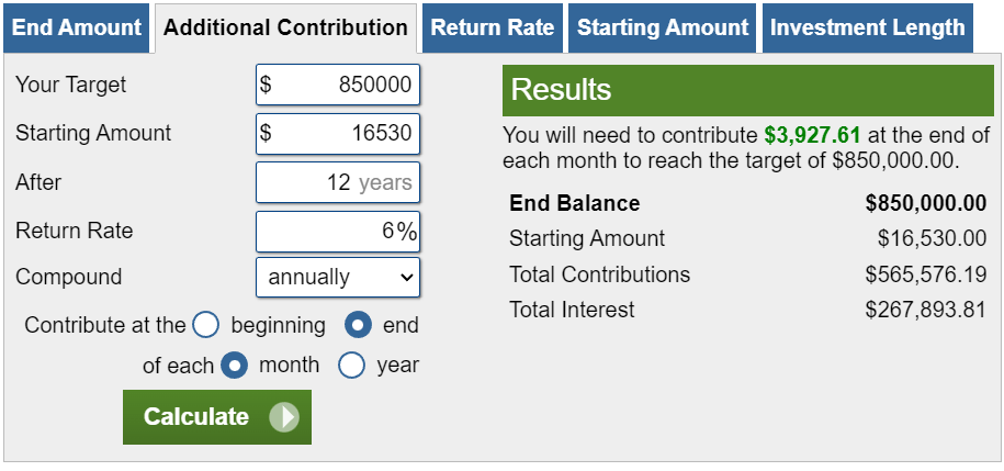 While I am very confident I can grow my investment portfolio again and in a faster time due to my income and working hard on saving, given the value that it’s at right now and my main goal of reaching a minimum of $850,000 by the time I’m 40, let’s do some maths to see how much more I’ll need to invest now per month: