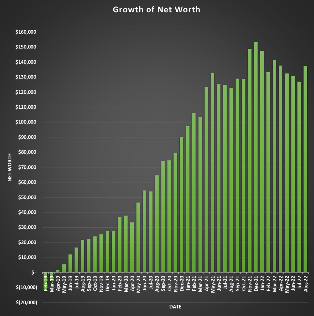 - At 7 August 2022, my net worth was $137,460, which is finally a decent increase from the past month (+$10,000)!